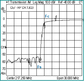 * Fc is lowest channel to pass (or cutoff frequency in MHz). Fs is one channel below Fc (or 1.5 MHz below Fc).